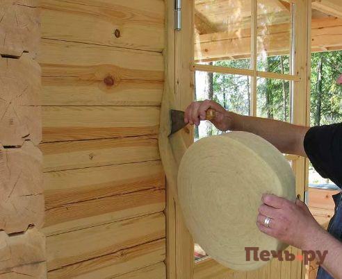 Уменьшите сроки усадки, используя высушенные материалы. В помещениях должна быть влажность не выше 60%. Брус и бревна с торцевой стороны необходимо обработать специальным составом. Это позволит предотвратить отдачу влаги и утеплить межвенцовые швы. Необходимо использовать пленку, которой накрывают вертикальные и горизонтальные поверхности.